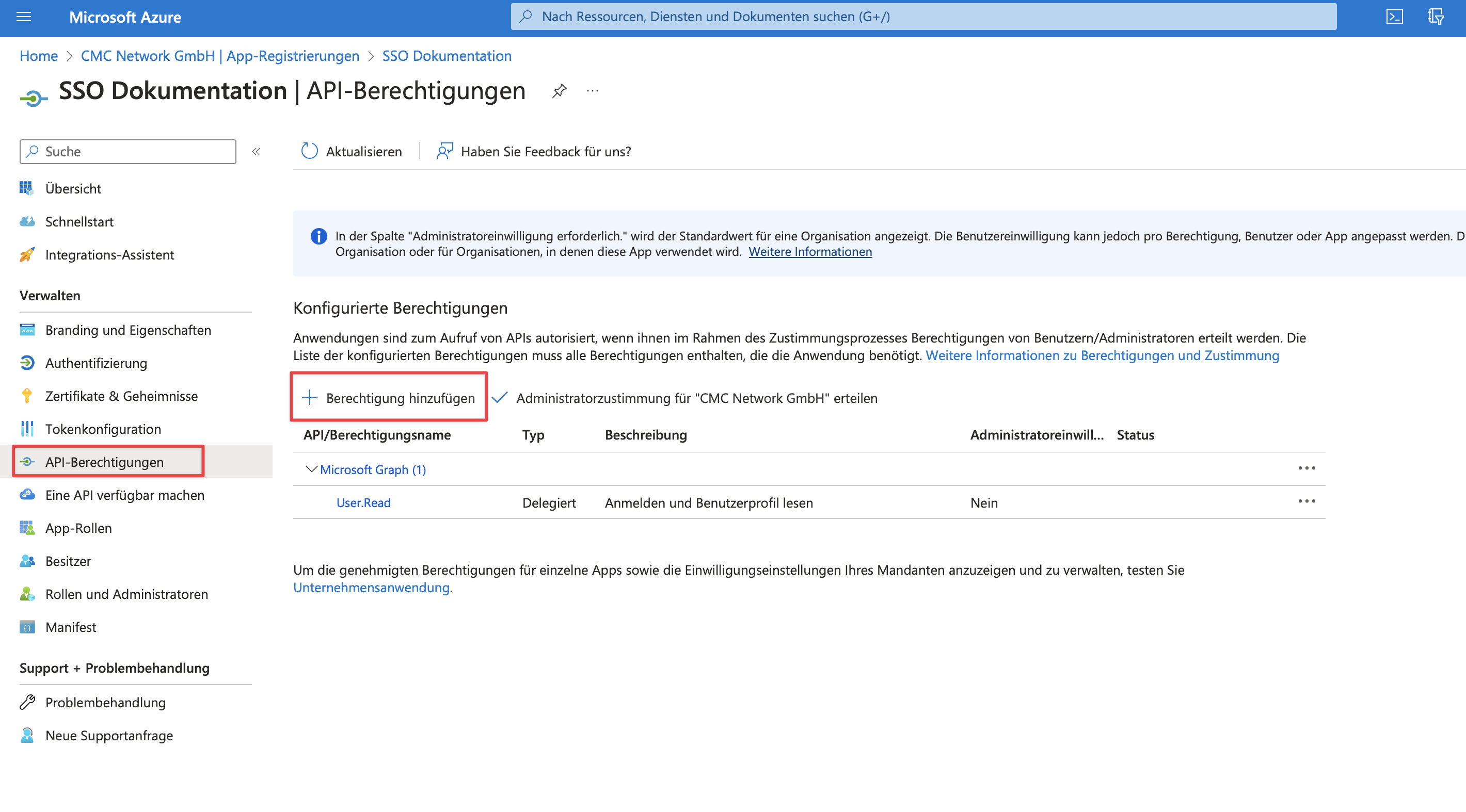 Herzlichen Glückwunsch! Wir haben unsere Anwendung erfolgreich im AD registriert. Nun müssen wir der Anwendung noch Berechtigungen einräumen, damit die Anmeldung reibungslos klappt.