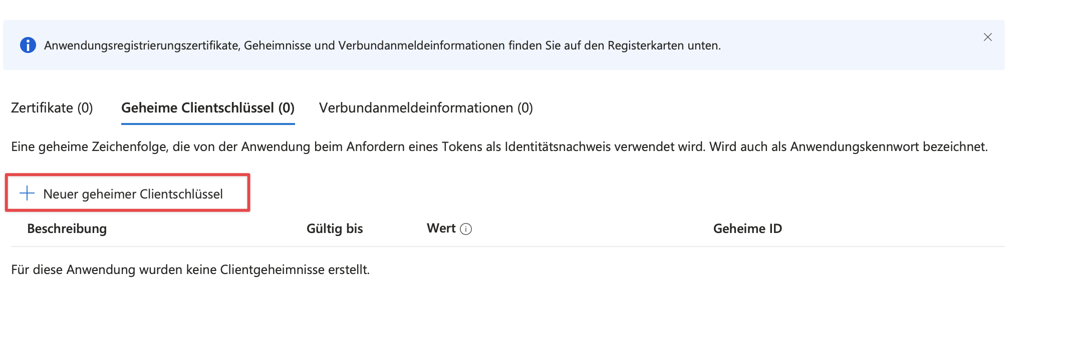 Nachdem wir die Berechtigungen angelegt haben, müssen wir noch ein Secret erzeugen.