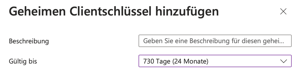 Und für Gültig bis vergeben wir ein passendes Gültigkeitsdatum. Die Länge der Gültigkeit ist abhängig von den internen Sicherheitsbestimmungen Ihres Unternehmens. Sofern nicht anders vorgegeben, verwenden wir in der Regel 24 Monate.